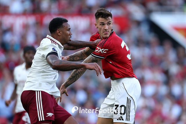 시작부터 맨유는 강하게 몰아쳤다. 전반 6분 음뵈모 슈팅은 라야 선방에 막혔다. 전반 8분 도르구 슈팅은 빗나갔다. 음뵈모를 앞세워 몰아치던 맨유는 실점을 했다. 전반 13분 코너킥 상황에서 칼라피오리가 헤더 득점을 기록하면서 아스널이 1-0으로 앞서갔다.