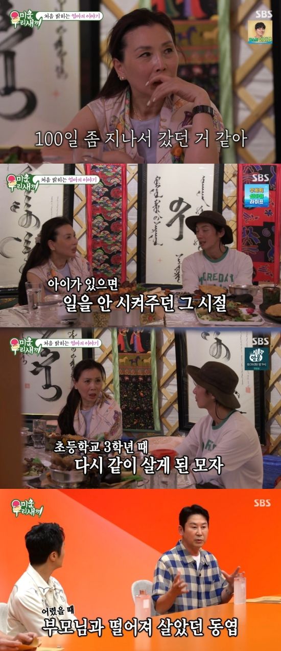 윤시윤 모자의 영상을 본 뒤, 신동엽은 "중간에 저는 사실 조금 힘들었다. 저도 4살 때 할아버지의 사업이 안 좋아지면서 학교 선생님이셨던 아버지가 그 빚을 갚느라 너무 힘드셨다. 엄마가 일을 해야 됐다"라고 어린 시절 이야기를 꺼냈다.