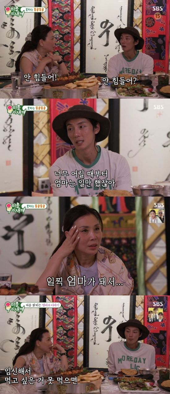 이에 엄마는 "안 힘들고 너무 좋다. 돈도 벌고 건강 위해서 일도 한다"라고 만족했지만, 윤시윤은 "나도 엄마가 건강하게 사회생활을 하는 게 좋다. 그런데 너무 어릴 때부터 일만 했다. 성인이 되자마자 나 때문에 일을 해야만 했다"라고 말했다.