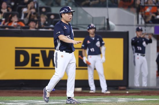 이날 두산은 정수빈(중견수)~오명진(2루수)~제이크 케이브(우익수)~양의지(포수)~안재석(지명타자)~박준순(3루수)~강승호(1루수)~김민석(좌익수)~이유찬(유격수)으로 이어지는 선발 타순을 앞세워 한화 선발 투수 조동욱과 맞붙었다.