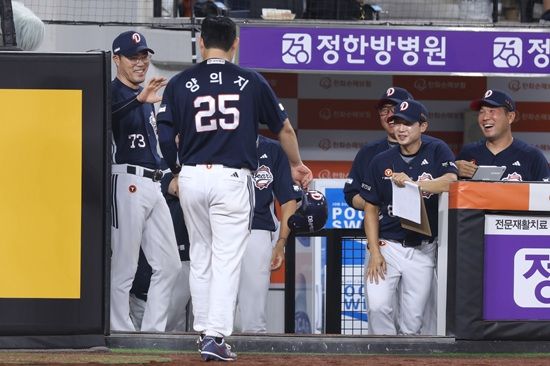 이날 2안타 3타점 1득점으로 맹타를 휘두른 김민석도 "연승을 이어가는 데 조금이나마 보탬이 된 것 같아 기분 좋다. 팀 전체적으로 선취점을 내줘도 금방 따라갈 수 있다는 분위기가 형성돼있다. 최고참 (양)의지 선배님부터 막내 (박)준순이까지 한마음 한뜻으로 승리만 생각하고 준비하고 있다. 그 덕에 좋은 결과가 나온다고 생각한다"라고 강조했다.