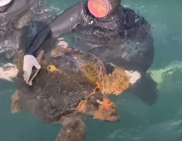 경남 남해안에서 멸종위기종 붉은바다거북이 폐그물에 감긴 채 해녀들에게 구조됐다고 KBS가 최근 보도했다.