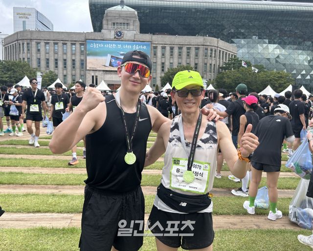 1시간 정도 걸려 10km를 완주했다는 이정식 씨는 아들인 이호근(36) 씨와 함께 뛰었다. 이정식 씨는 “아들과 출발만 같이 하지, 자기 페이스대로 간다”며 웃었다. 이호근 씨는 “내가 결혼하고 아버지와 함께할 기회가 많이 없는데, 이렇게 같이 뛰어서 좋다”고 소감을 밝혔다.