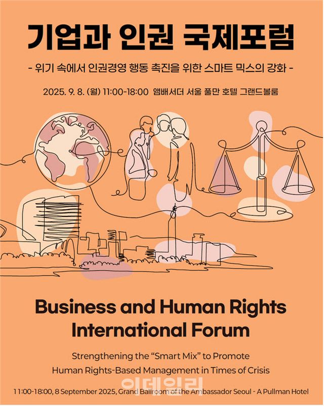 7일 법무부에 따르면 두 기관은 8일 오전 11시부터 오후 6시까지 서울 중구 앰배서더 서울 풀만 호텔 그랜드볼룸에서 ‘위기 속에서 인권경영 행동 촉진을 위한 스마트 믹스(Smart Mix)의 강화’를 주제로 포럼을 진행한다.