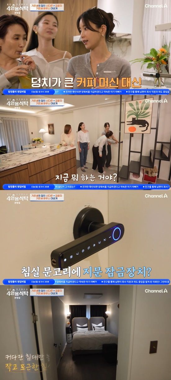 이날 기은세는 자신의 집으로 사람들을 초대했다. 지문 인식으로 여는 침실부터 아일랜드 식탁이 돋보이는 주방, 이어 명품 구두와 가방, 의류로 가득한 옷방까지 공개했다.