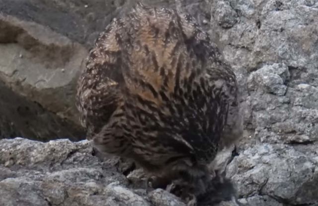 ‘도시에 널렸네? 요즘 수리부엉이들이 먹이로 인식했다는 동물’이란 제목으로 올라온 영상에서 어미 수리부엉이는 고양이 한 마리를 꺼내와 바위 위에서 새끼들에게 나눠준다.