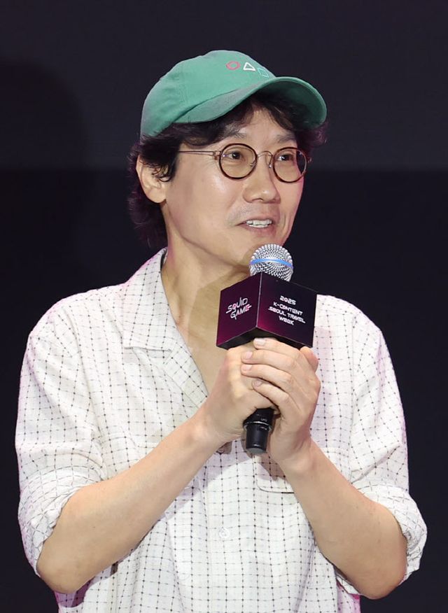 황동혁 감독이 28일 서울 중구 서울광장에서 열린 오징어게임3 팬 이벤트 행사에서 인사말을 하고 있다. (사진=뉴시스)