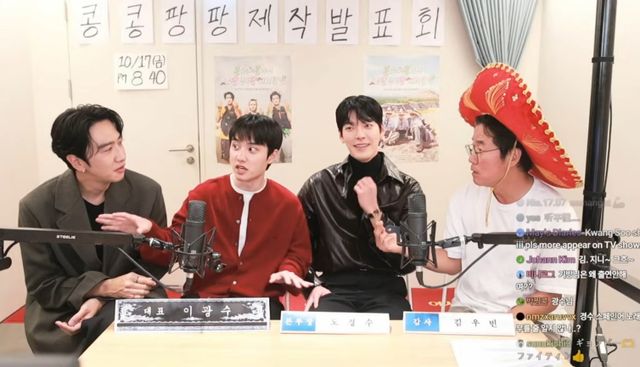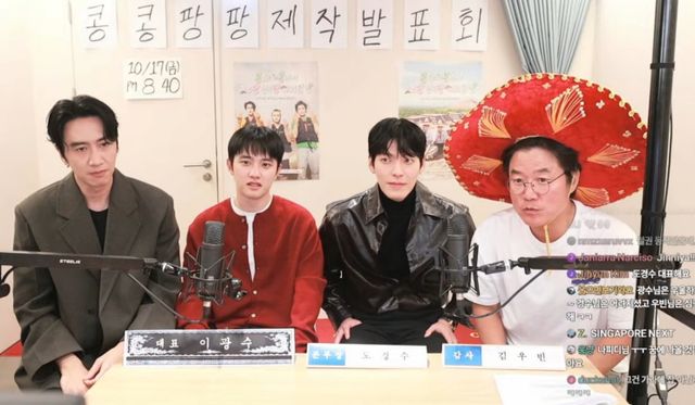 15일 오후 유튜브 채널 '채널십오야'에서는 나영석PD와 이광수, 김우빈, 도경수가 '세계로! 미래로! KKPP푸드!'라는 제목의 '콩콩팡팡' 제작발표회 라이브 방송을 진행했다.
