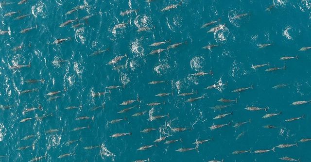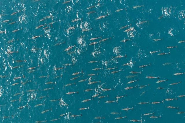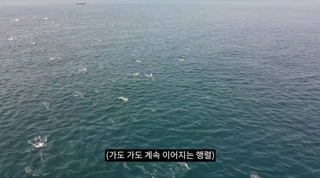 영상에는 거센 파도를 가르며 헤엄치는 수많은 돌고래의 모습이 담겼다. 유튜버는 흥분을 감추지 못한 채 “1000마리 넘겠는데 이거. 이런 기회 흔치 않다”며 드론을 띄워 개체 수를 파악하기 시작했다. 배 아래로 돌고래 무리가 지나가자 그는 엔진을 끄고 관찰에 집중하며 “100마리는 훌쩍 넘는 것 같다. 앞쪽에 무리가 어마어마하다”며 연신 감탄했다.