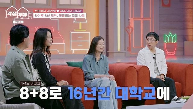김민재는 “대학교를 8년 다녔다. 일도 하느라 졸업을 못할 뻔했다. 그때 교수님들이 다 붙잡았다”라고 떠올렸다. 8번 만에 모교에 합격했다고. 박명수는 “사법고시를 보지 그랬냐”라며 “그럼 학교에 16년 있었네. 학교를 사랑하지 않을 수 없다”라고 인정했고, 문소리는 “그래서 유명했다. 한예종 귀신처럼”이라고 밝혔다.