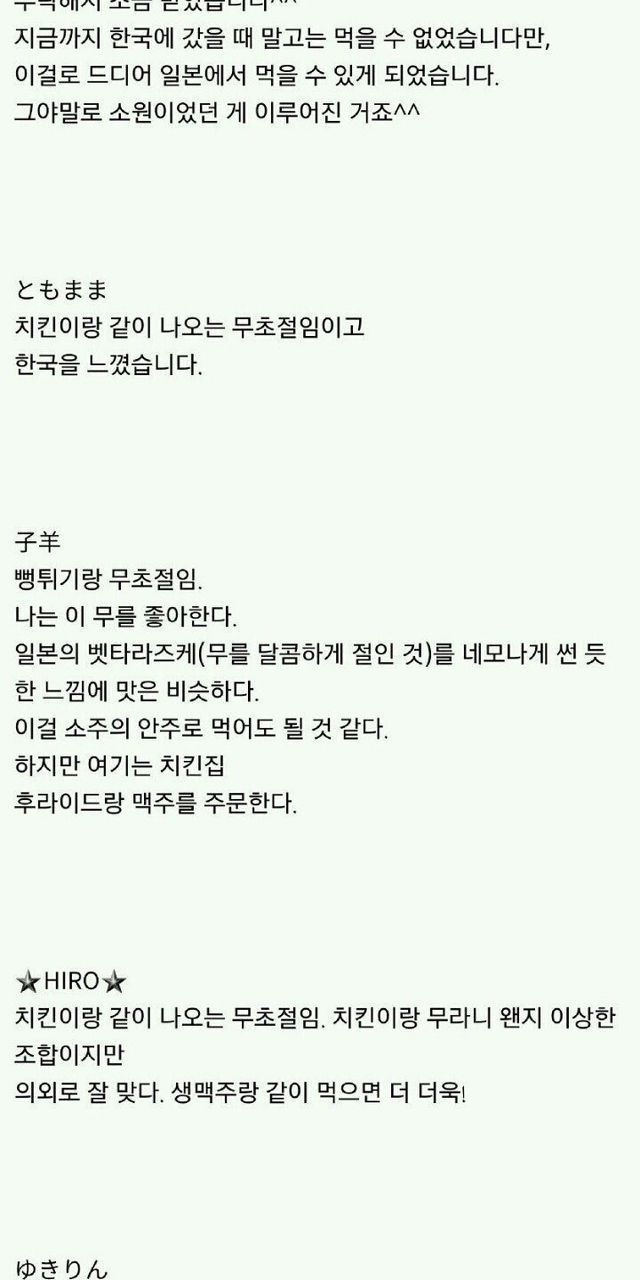 치킨무에 대한 일본 반응