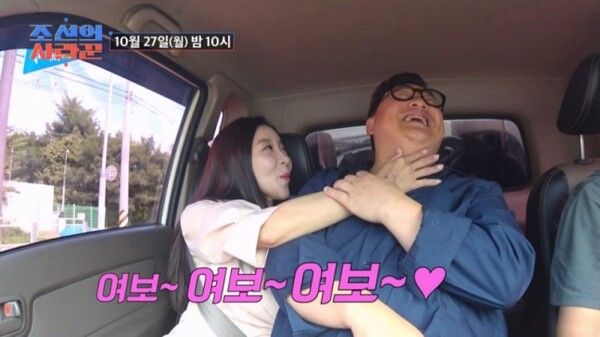 운전기사의 요청에 원진서는 곧바로 윤정수에게 ‘3단 여보’를 선보이며 특급 팬서비스를 펼쳤다. 운전기사는 "거기서는 안 하시더만..."이라며 웃었고, 윤정수는 "아직 신혼이어서 이 상황을 로맨틱하게 여기는 것 같다. 여기는 처음부터 ‘여보’를 너무 잘한다"며 은근히 예비신부를 자랑해 화기애애한 분위기를 자아냈다.