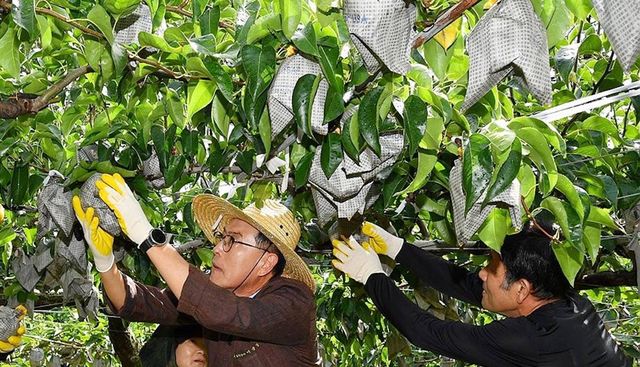 최근 울산 울주군 온양읍 운화리 산불 피해지역에 있는 한 농장에서 이순걸 울주군수 등이 참석한 가운데 미국 수출용 원황배를 수확하는 행사가 열렸다. 이 지역은 지난 3월 대형 산불이 발생한 지역이다. 이런 가운데 울주군은 지역 대표 과일인 울산배의 해외시장 판로를 개척하기 위해 미국에 홍보단을 파견한다. 울주군은 10월 29일부터 11월 6일까지 미국에 홍보단을 보내 울산배의 우수성을 홍보하고 현지 시식회 등 적극적인 마케팅을 펼칠 예정이라고 밝혔다. / 울주군 제공-연합뉴스