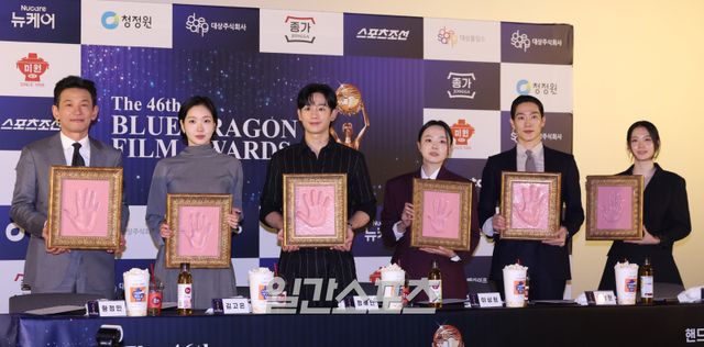 배우 황정민, 김고은, 정해인, 이상희, 노상현, 박주현이 29일 오전 서울 영등포구 CGV여의도에서 열린 제46회 청룡영화상 핸드프린팅 행사에 참석해 각자 핸드프린팅 액자를 들고 포토타임을 갖고 있다. 이 행사에는 지난해 제45회 청룡영화상 수상자인 황정민, 김고은, 정해인, 이상희, 노상현, 박주현이 참석한다. 핸드프린팅은 청룡영화상의 전통적인 사전 행사로, 한 해 수상자들이 남긴 업적을 영구히 기념하는 의미 있는 자리이다. 서병수 기자 qudtn@edaily.co.kr /2025.10.29/