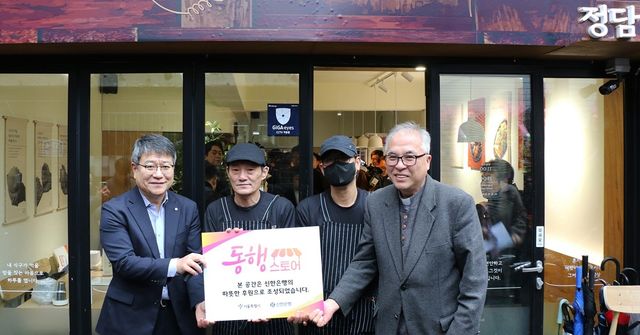 신한은행이 서울시와 손잡고 추진하는 자활 프로젝트 '동행스토어'의 첫 번째 매장인 '정담'이 16일 용산구 동자동에서 개업했다. 이날 오픈 행사에는 오세훈 서울시장과 이정빈 신한은행 경영지원그룹장이 함께 자리해 개업을 축하했다.