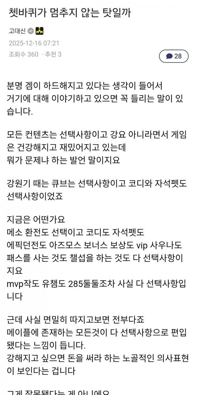 새벽에 잠깐 올라왔다가 지금은 지워진 글