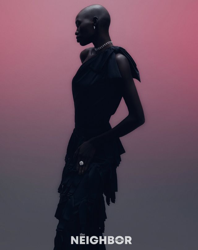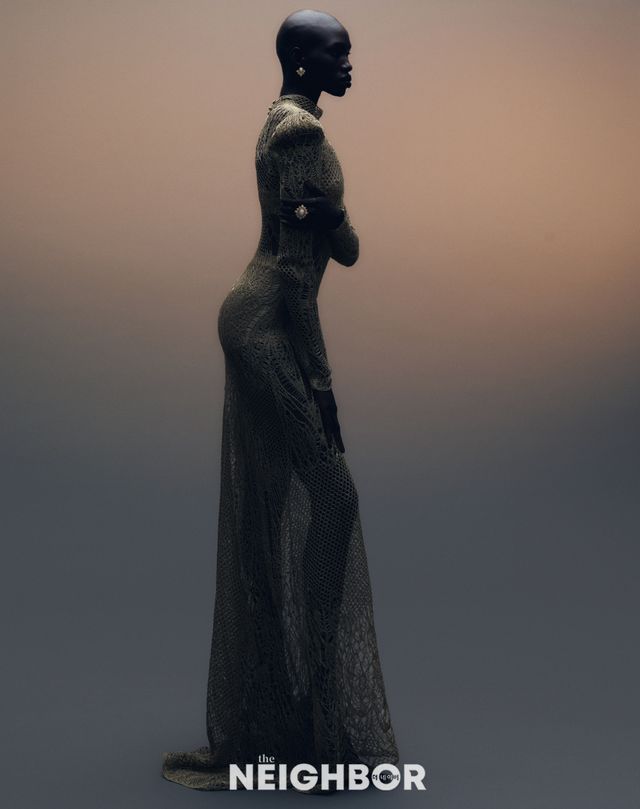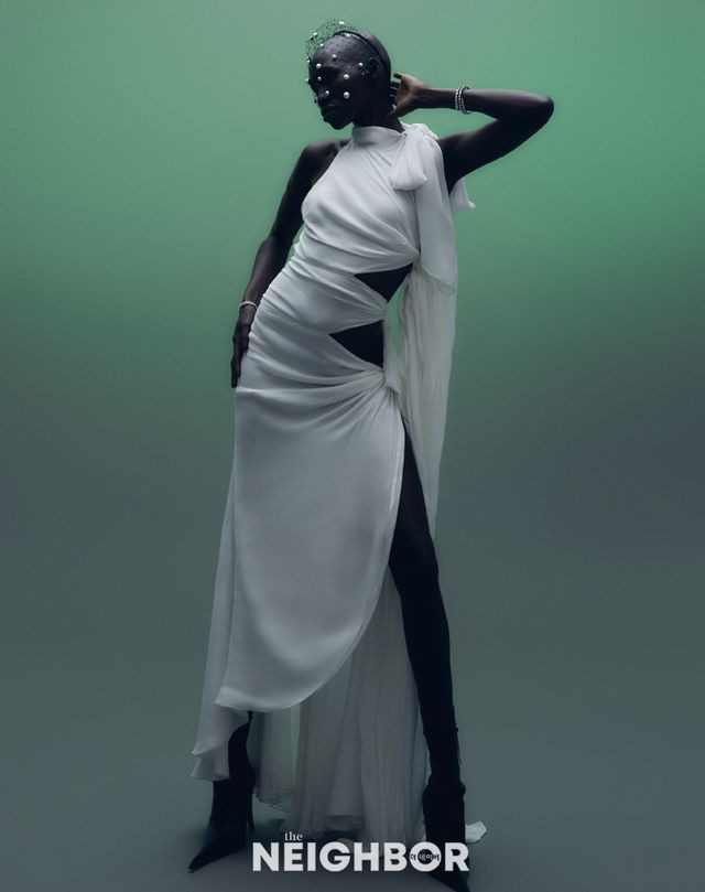 Alaïa 컷아웃, 보 디테일의 비대칭 드레스 가격 미정.