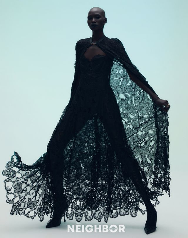 Gabriela Hearst 극도로 정교한 짜임이 돋보이는 블랙 실크 오간자 레이스 소재의 루마 슬립 미디드레스, 케이프 모두 가격 미정.
