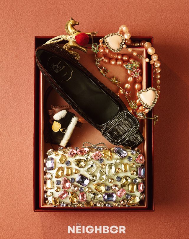 Roger Vivier 전체에 스팽글을 장식한 트위드 소재 벨 비비에 펌프스 2백98만원.