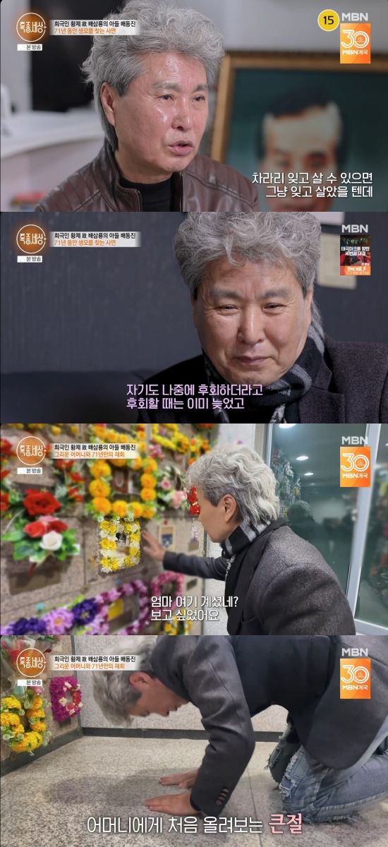 18일 방송된 MBN '특종세상'에는 71년 전 헤어진 생모를 애타게 찾고 있는 故 배삼룡의 아들 배동진의 사연이 공개됐다.