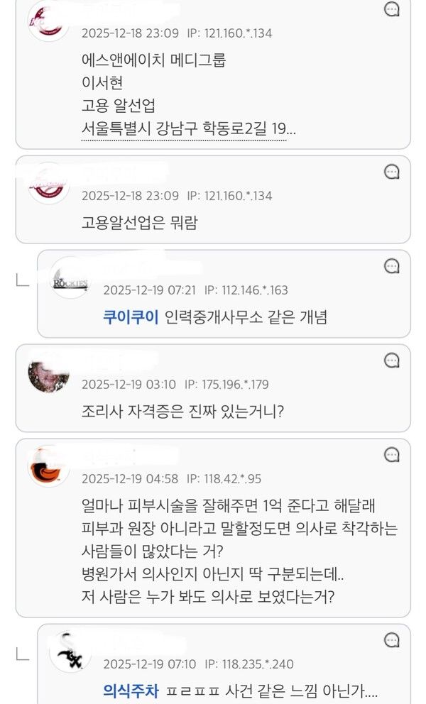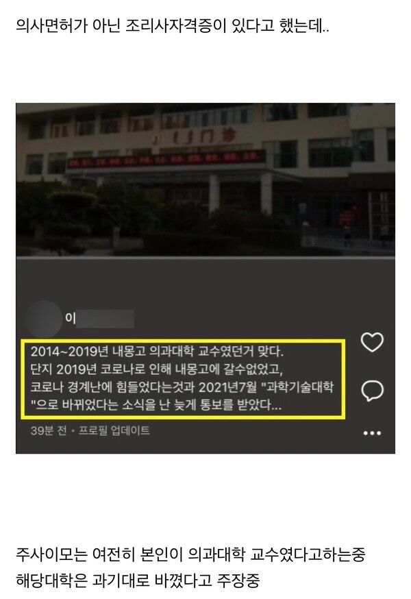 특히 “하버드 의대 교수라도 한국에서는 면허 없으면 의료행위는 불법이다”라는 지적과 함께, “연예인들이 뒤에서 몰래 연락받고 의사인 줄 알고 시술받은 것처럼 행동한 건 아닌지”에 대한 추측도 나오고 있다.