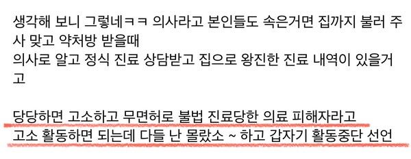 또한 “의료 면허는 없다”고 스스로 인정하며 “과거 약국에서 약을 보내주던 시절에 반찬값 정도 벌기 위해 일했을 뿐”이라고 해명했다.