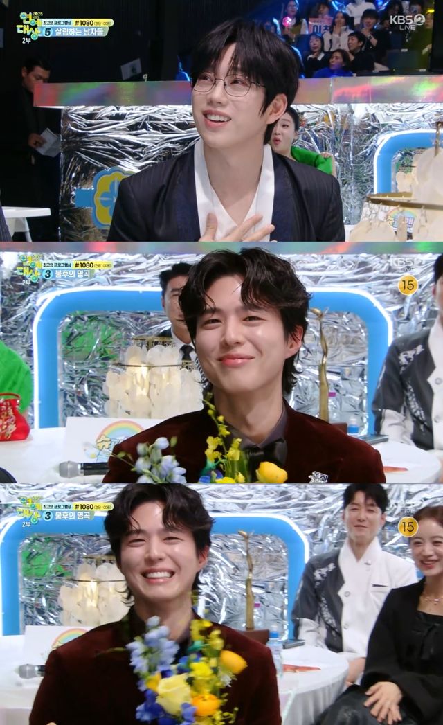 잠시 후 박보검이 도착하자, 붐은 환영의 꽃다발을 건넸다. 박보검의 남다른 미모에 이찬원은 "박보검 씨는 존재만으로 빛이 난다"며 감탄하기도. '더 시즌즈-박보검의 칸타빌레'를 이끌어온 박보검은 올해 대상 후보로도 올랐다.