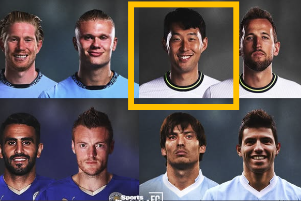 이 쟁쟁한 전설들 사이에서 토트넘 홋스퍼의 유니폼을 입은 손흥민과 해리 케인이 당당히 한 자리를 차지해 눈길을 끌었다.