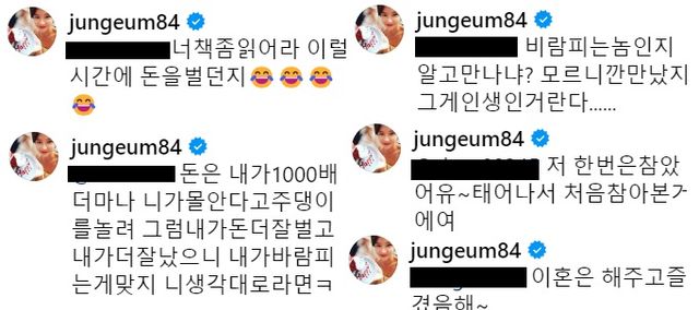 이에 황정음은 "책 좀 읽어라"라며 해당 댓글을 단 네티즌에게 직접 분노를 표출하며 "돈은 내가 1000배 더 많아. 네가 뭘 안다고 입을 놀려. 그럼 내가 돈 더 벌고 내가 더 잘났으니 내가 바람 피는 게 맞지. 네 생각대로라면"이라고 토로했다.