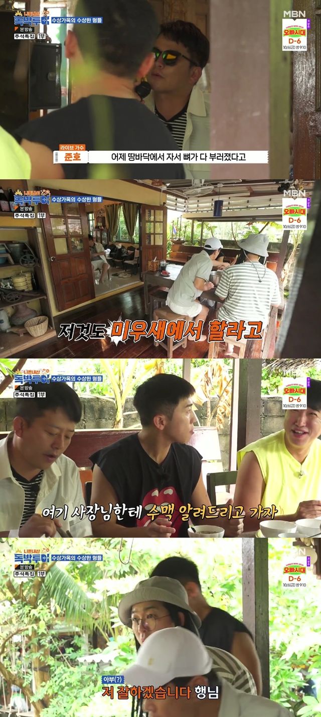 이날 독박즈는 수상가옥에서 아침을 맞았다. 조식으로는 태국식 새우 죽이 등장했다. 실한 새우의 모습에 독박즈는 기대감을 더했다.