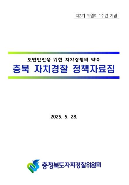 [경기연합신문 ] 충청북도자치경찰위원회는 제2기 위원회 출범 1주년에 즈음하여 '도민안전을 위한 충북 자치경찰 정책자료집'을 발간·배포했다고 밝혔다.