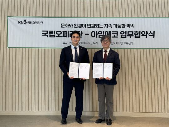 김지훈 대표이사는 “이번 국립오페라단과의 협약은 문화예술과 환경이 조화를 이루는 지속 가능한 가치를 실현하는 뜻깊은 시작”이라며 “앞으로도 환경과 사회적 책임을 함께 생각하는 공연 문화를 만들어가겠다”고 밝혔다.