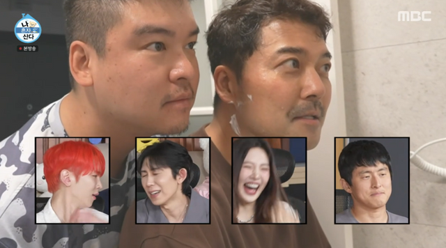이날 운동 삼매경인 박나래 뒤로 전현무는 “얼굴이 무겁다”며 덥수룩한 수염을 밀었다. 스튜디오에서 자신의 모습을 본 전현무는 “면도핑이다. 무린센스 면도한다”고 말했고 박나래는 “뽀얀거 봐”라며 질색했다.