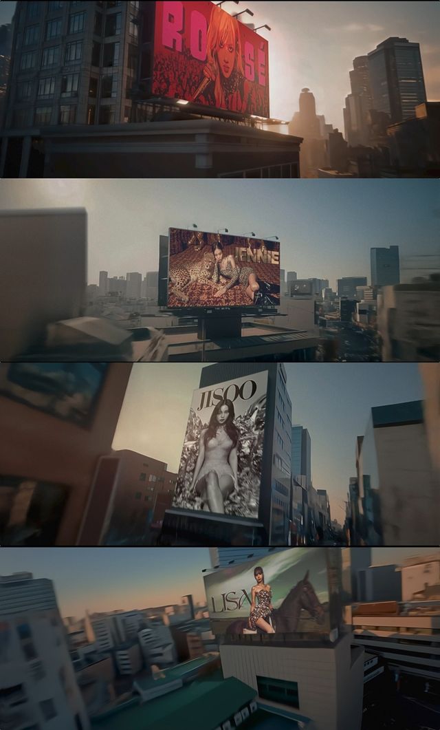 시작부터 강렬하다. 히어로물의 주인공을 연상시키듯 비행 중인 블랙핑크의 모습이 코믹북 커버 스타일로 담겨 시선을 압도한 것. 고층 건물 사이 상공을 가로지르는 역동적인 카메라 무빙 연출은 남다른 흡인력을 자랑했다.