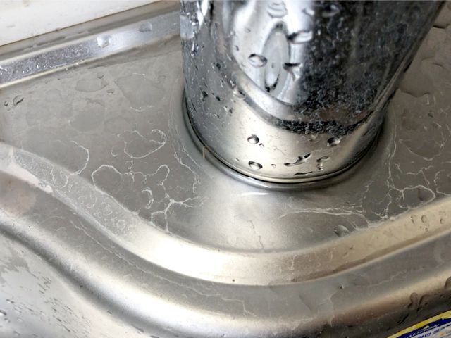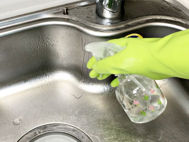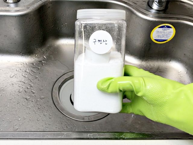 싱크대 물기를 닦고 구연산수를 뿌려주세요.