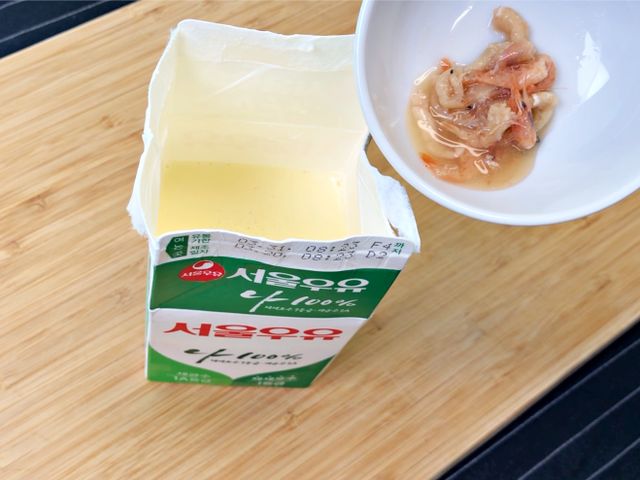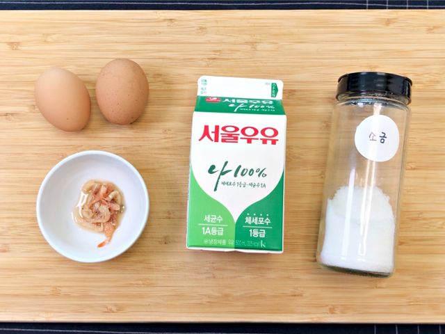 재료는 500ml흰우유, 계란2개, 새우젓, 소금 준비 끝.