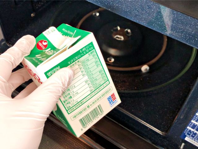 우유팩 입구를 오므려서