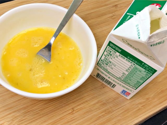 대부분 계란물에 흰우유를 직접 붓는데요.
