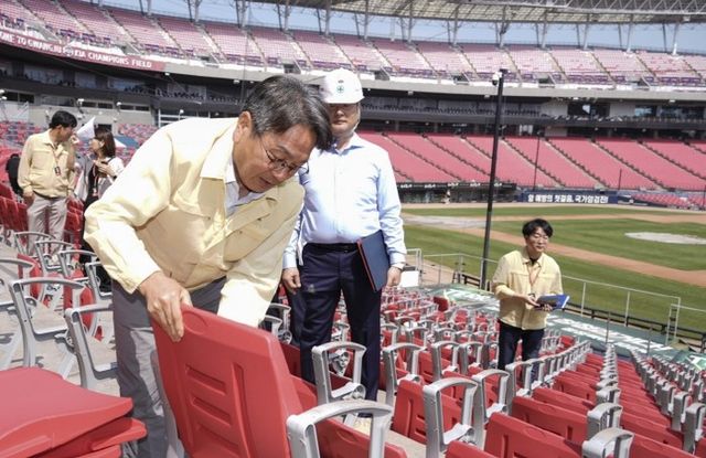 또 프로야구 기아타이거즈 팬들의 관심인 챔피언스필드 관람석 좌판, 등판, 컵홀더 등 교체 작업 현장을 직접 살폈다.