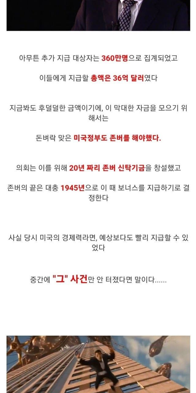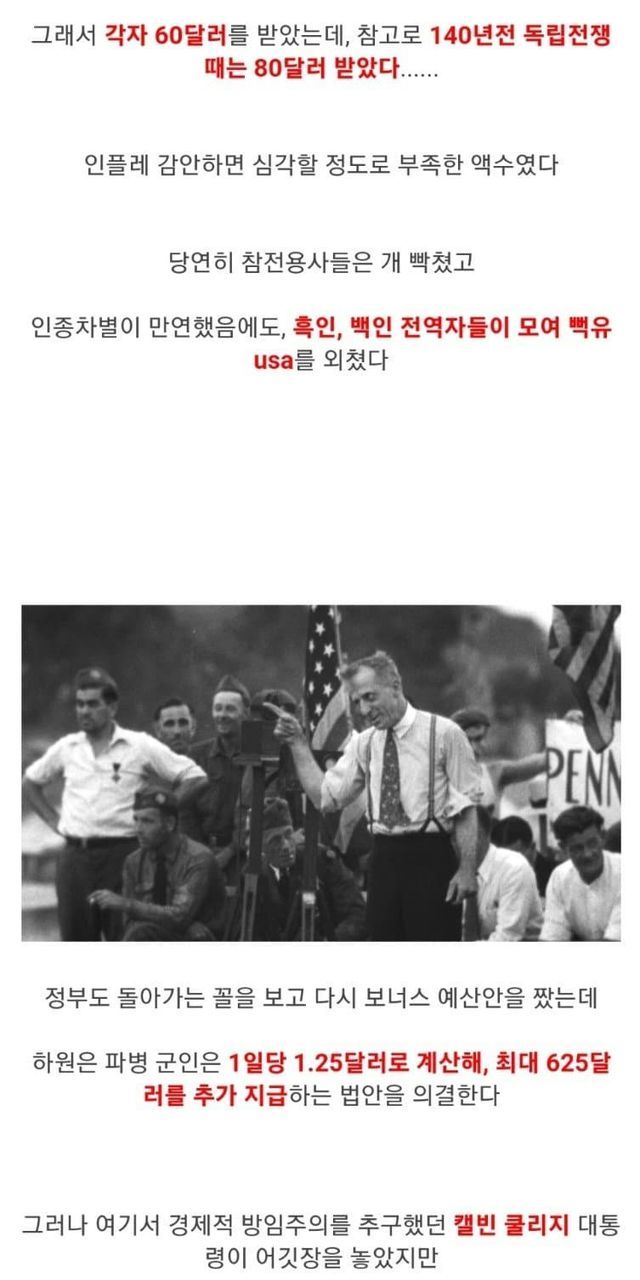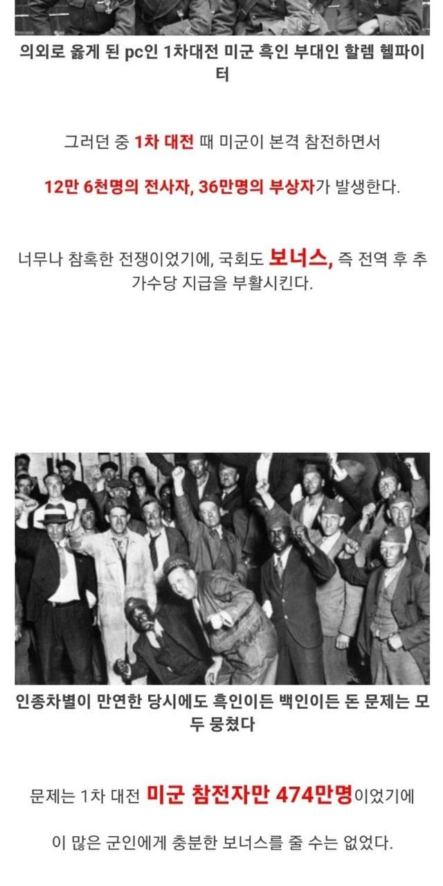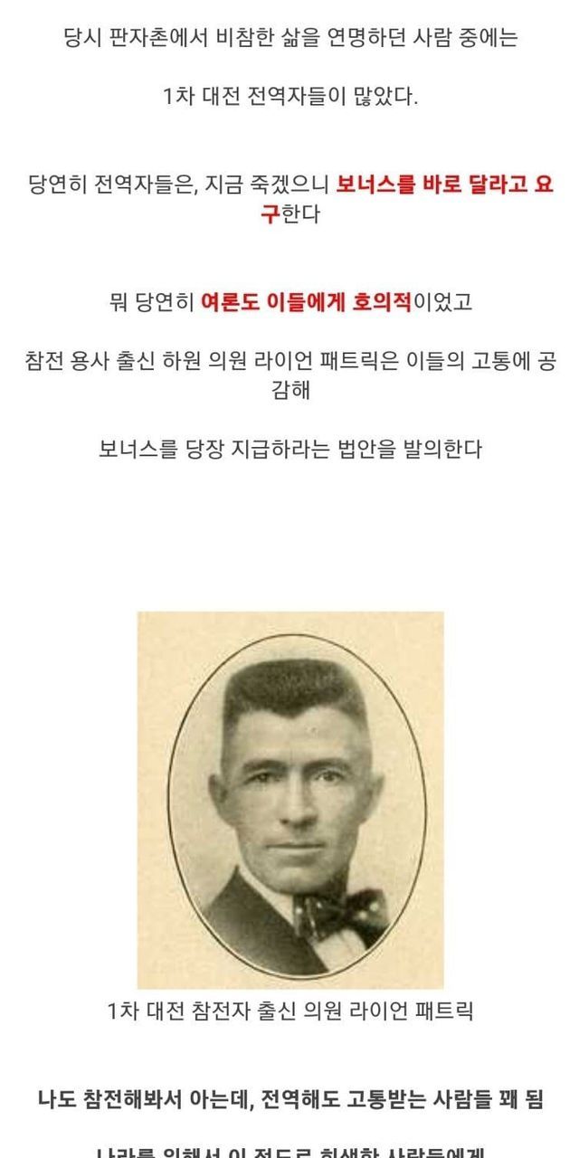 1. 1차 대전 전역자 - 삶이 피폐한데 지원좀 해줘라.