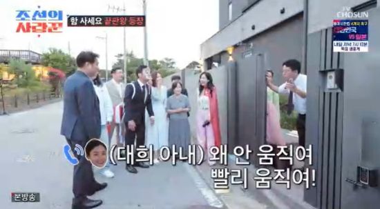 그뿐만 아니라 김준호는 김대희 아내와 통화했고, 김대희 아내는 "왜 안 움직여, 빨리 움직여"라며 쏘아붙였다. 김대희는 김대희 아내의 말을 듣자마자 박을 깨고 집 안으로 들어갔고, "여보 사랑해"라며 애정을 과시했다.