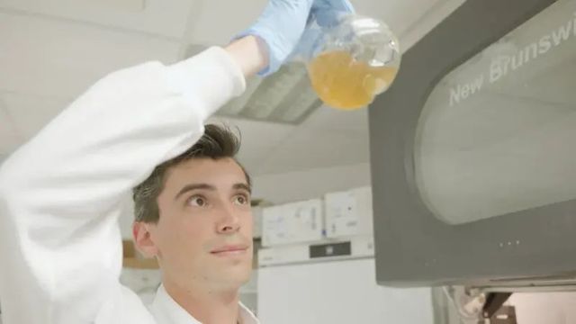 한 박사 과정 학생이 월리스 연구소에서 대장균 배양액의 성장을 확인하고 있습니다. / 출처: 에든버러 대학교