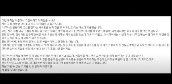 전 여친은 박수홍이 자신을 고소하면 자신도 맞고소 하겠다는 뜻을 밝혔다.