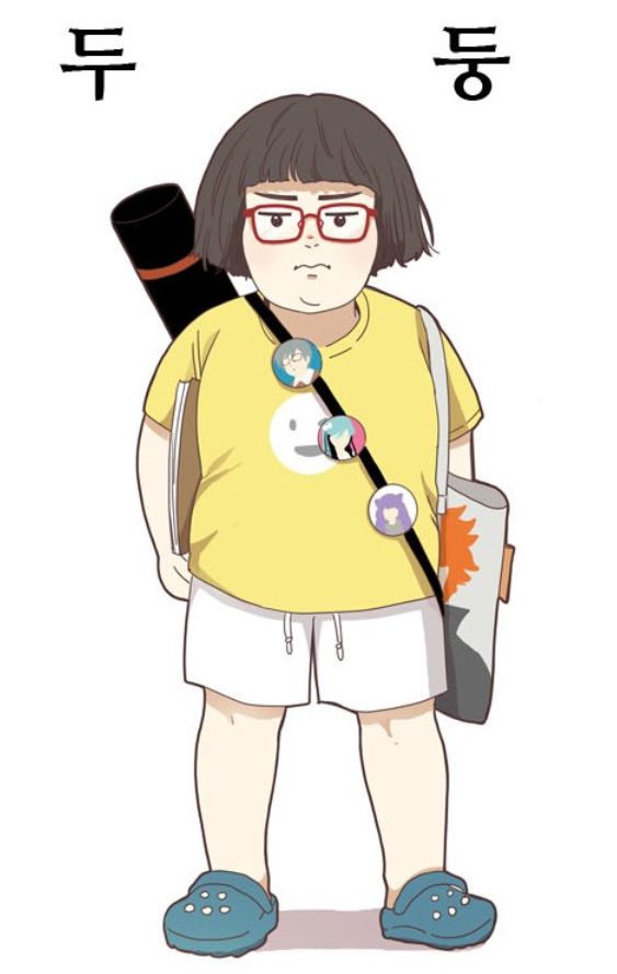 일단은, 주연 캐릭터들의 경우 딱 이 사람을 모티브로 삼았다는 이런 인물은 없어요. 반면에 작게 작게 나오는 조연들은 모티브를 따온 인물이 몇 명 있어요. 예를 들면 우리라는 애가 나오는데요. 통통하고 힘세고 똑 단발에 그림을 잘 그리는 캐릭터가 있어요.