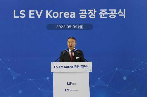 구자은 회장이 5월 LS지식산업센터에서 열린 'LS EV코리아 공장 준공식'에서 구자은 LS그룹 회장이 축사를 하고 있다. [사진=LS]