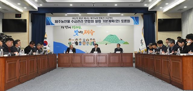 제주특별자치도는 22일 제주도청 4층 탐라홀에서 제주 농산물 수급관리연합회 설립 기본계획(안)을 공개하고 농업관련 기관·단체의 의견 수렴을 위한 토론회를 개최했다.