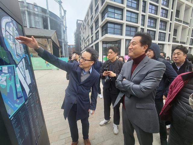 오세훈 시장은 13일(현지시간) 영국 런던의 킹스크로스역과 콜 드롭스 야드(Coal Drops Yard)를 돌아보고 있다. 이 지역은 구도심 역세권의 세계적 성공 개발 사례로 꼽히는 곳이다. [사진=서울시]