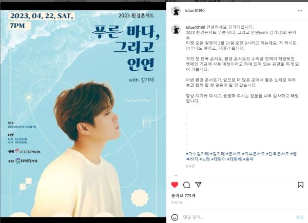 환경운동연합이 주최하는 이번 콘서트는 지구의 날을 기념해 개최되며 '인연'을 주제로 한 김기태의 무대가 펼쳐진다. 뿐만 아니라 '추억의 사진 공유' 관객 참여 이벤트 등이 예고돼 관객들의 기대를 모은다.