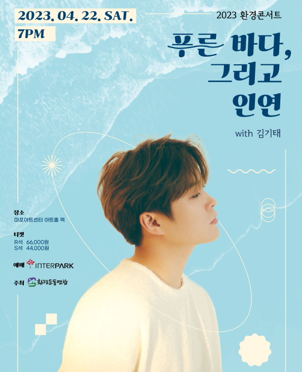 내달 22일 오후 7시 서울 마포문화센터 아트홀 맥에서 '2023 환경콘서트 - 푸른 바다, 그리고 인연(with 김기태)'을 연다. 지난 21일 오전 9시부터 인터파크 티켓을 통해 예매가 시작됐다.