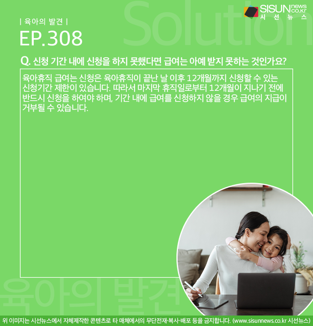 워킹맘 ‘윤희’는 첫째 아이를 출산하고 1년 동안 육아휴직에 들어갔다. 아이를 돌보며 바쁜 하루하루를 보냈고 그렇게 2년의 시간이 흘렀다. 윤희는 육아로 너무 바빴던 나머지 처음 3달 정도는 육아휴직 급여를 신청했지만 그 이후 기간 동안은 육아휴직 급여를 신청하지 않았다. 뒤늦게 이 사실은 안 윤희는 곧바로 육아휴직 급여를 신청했다. 하지만 신청 기간이 지났다는 이유로 윤희의 요청은 거부당했다. 초반에 신청을 하다 이후에 신청을 못하고 매달 청구하는 것이 번거로운 상황이 윤희는 너무 야속하기만 했다. 이처럼 윤희는 육아휴직 급여를 신청 못한 나머지 기간의 급여를 하나도 받을 수 없는 것일까?